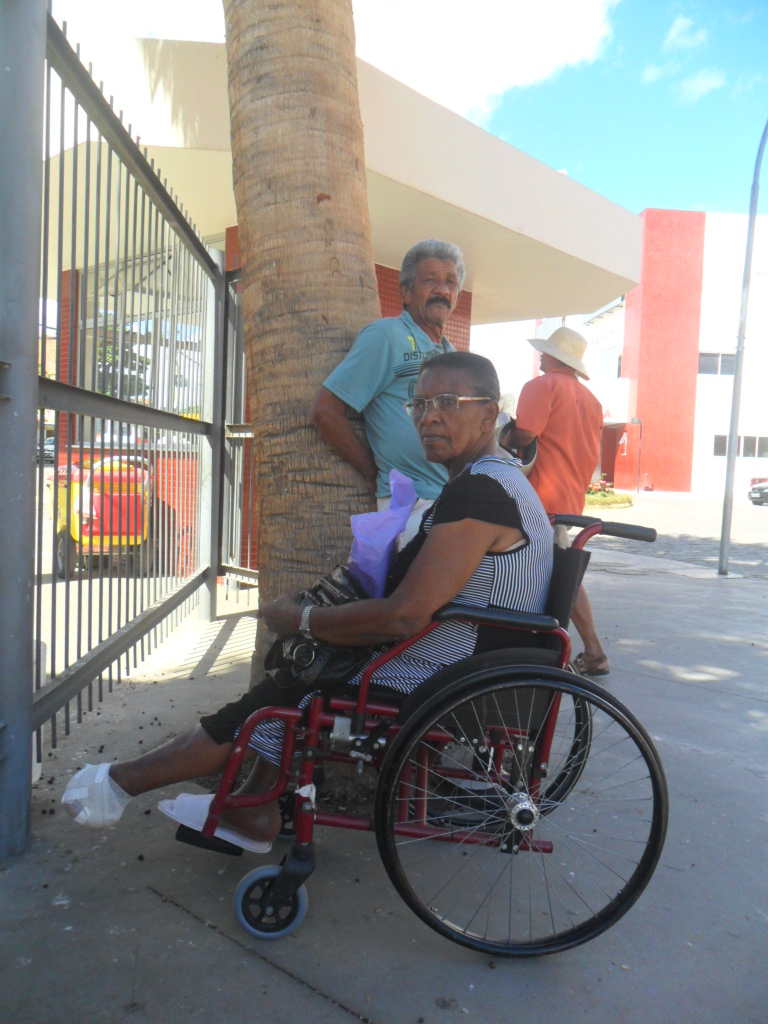 Para se deslocar até Juazeiro, Dona Maria Ferreira utiliza o transporte oferecido gratuitamente pela prefeitura da sua cidade, são 170 km de estrada. Ela vem acompanhada do marido Rosalvo Ferreira, 70, que a ajuda com a cadeira de rodas. “Eu também sou diabético. Mas não tem jeito, a gente espera tanto ser atendido que acaba comendo coisas que não devia”, diz o aposentado enquanto divide um pastel frito e um cafezinho com a mulher.